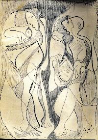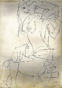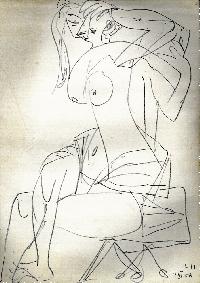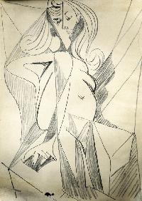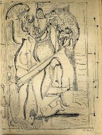 Weiblicher Akt mit Faun | 1952-00-00 | Tinte-Filzstift | 51/67 | blau/weiss |